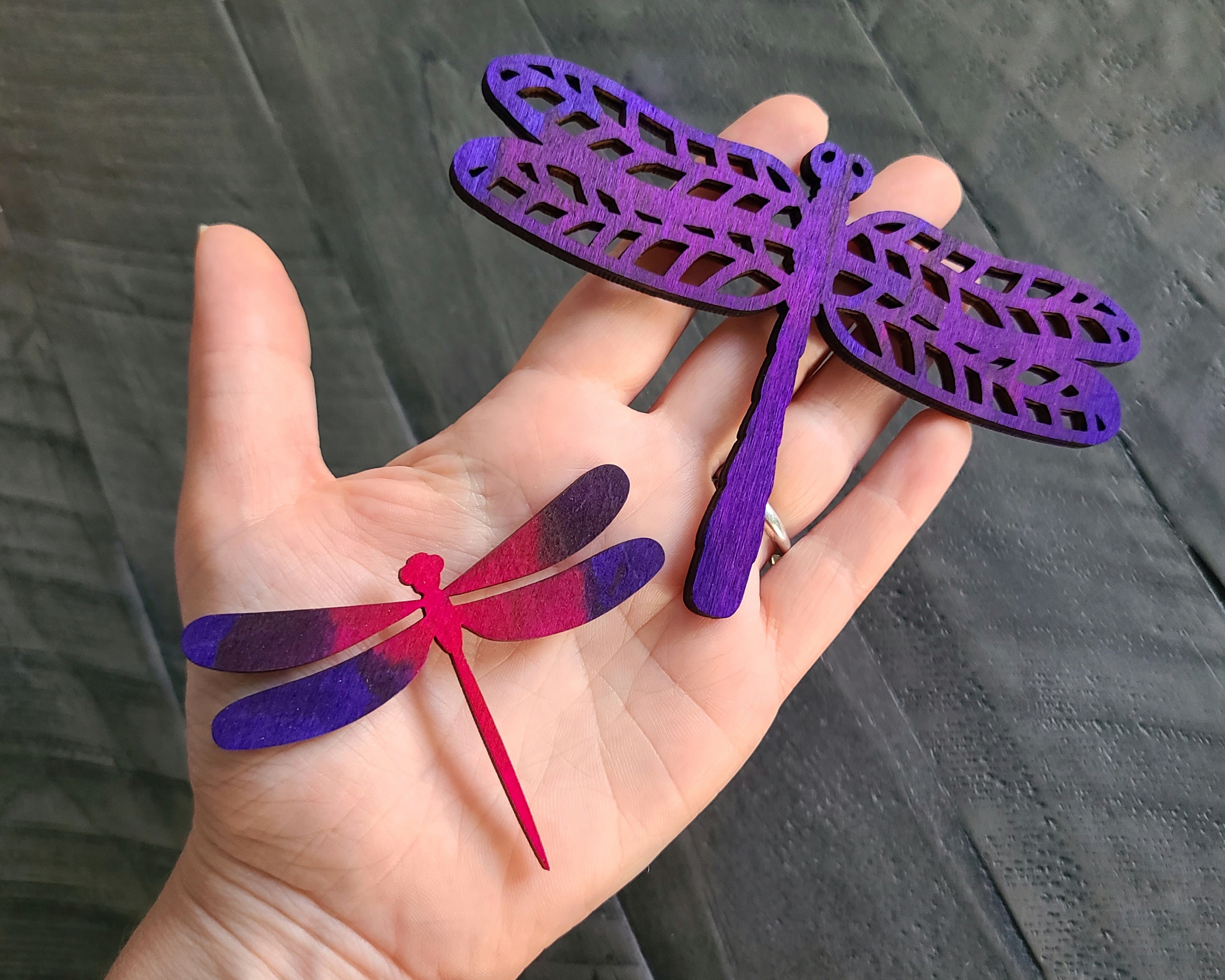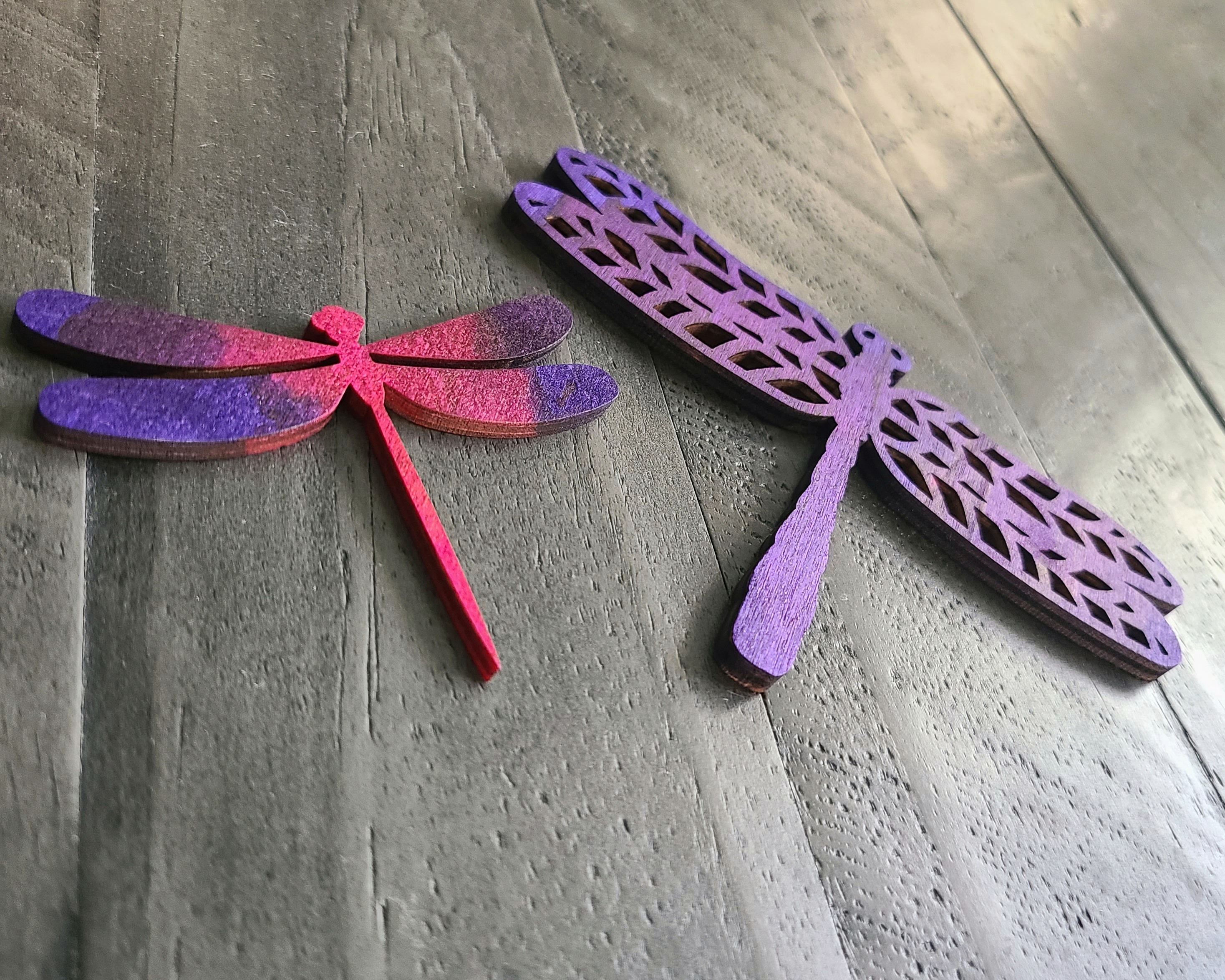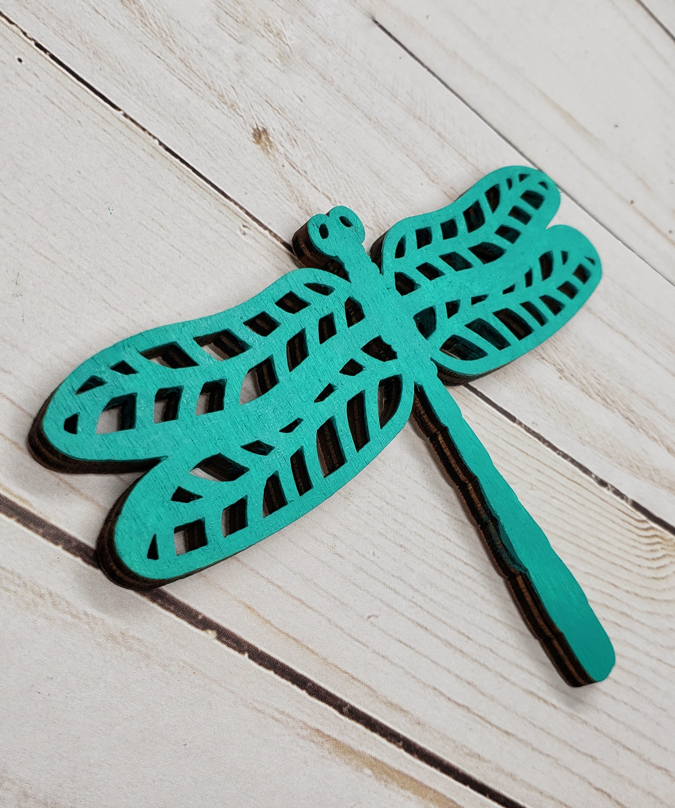 Wooden dragonfly magnet, hand-painted woodland magnet set.