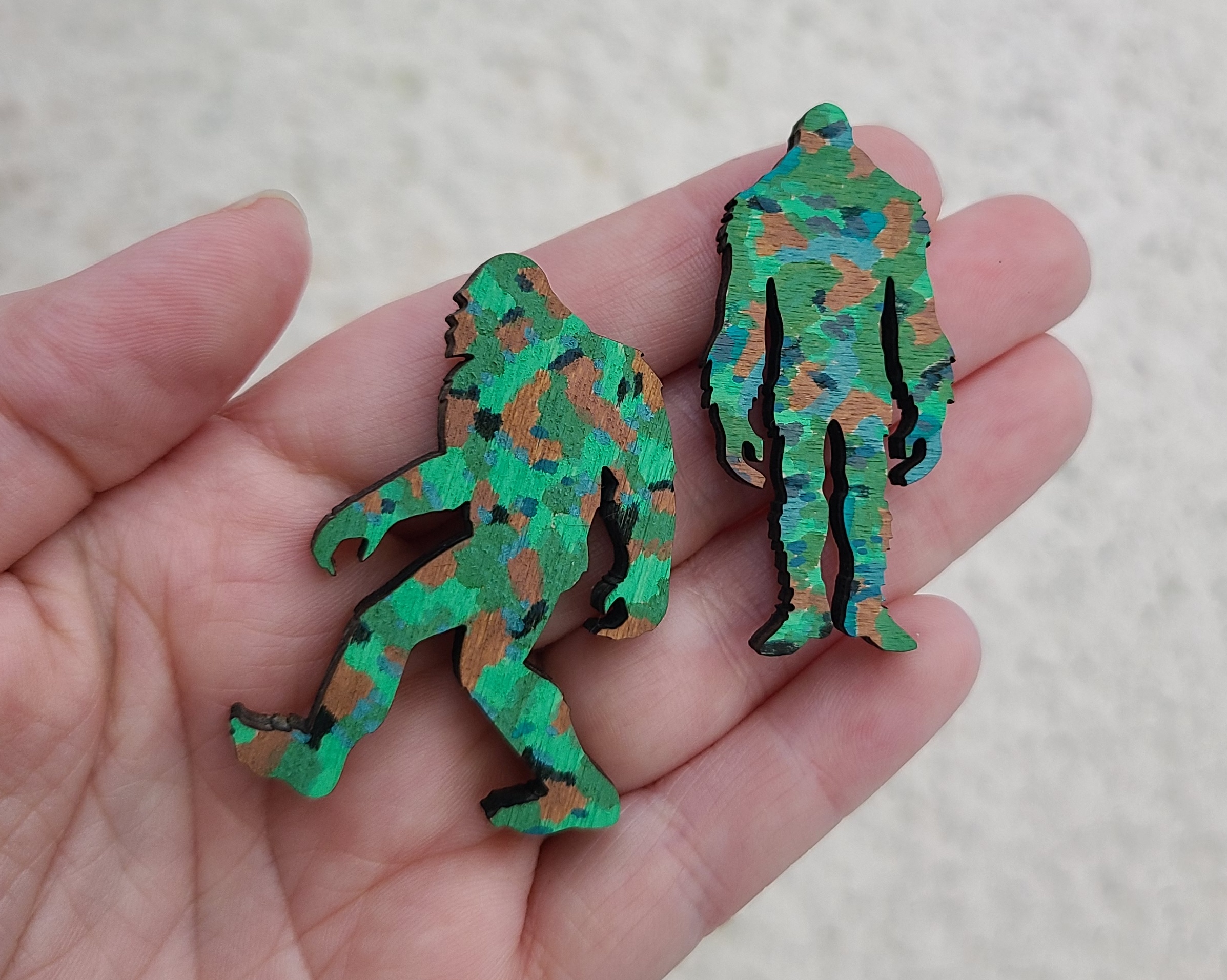 This set painted wooden Sasquatch Bigfoot Magnets can be painted in any color. They can also be made into ornaments or a gift tags. It would make an excellent gift for the outdoorsy man in your life!