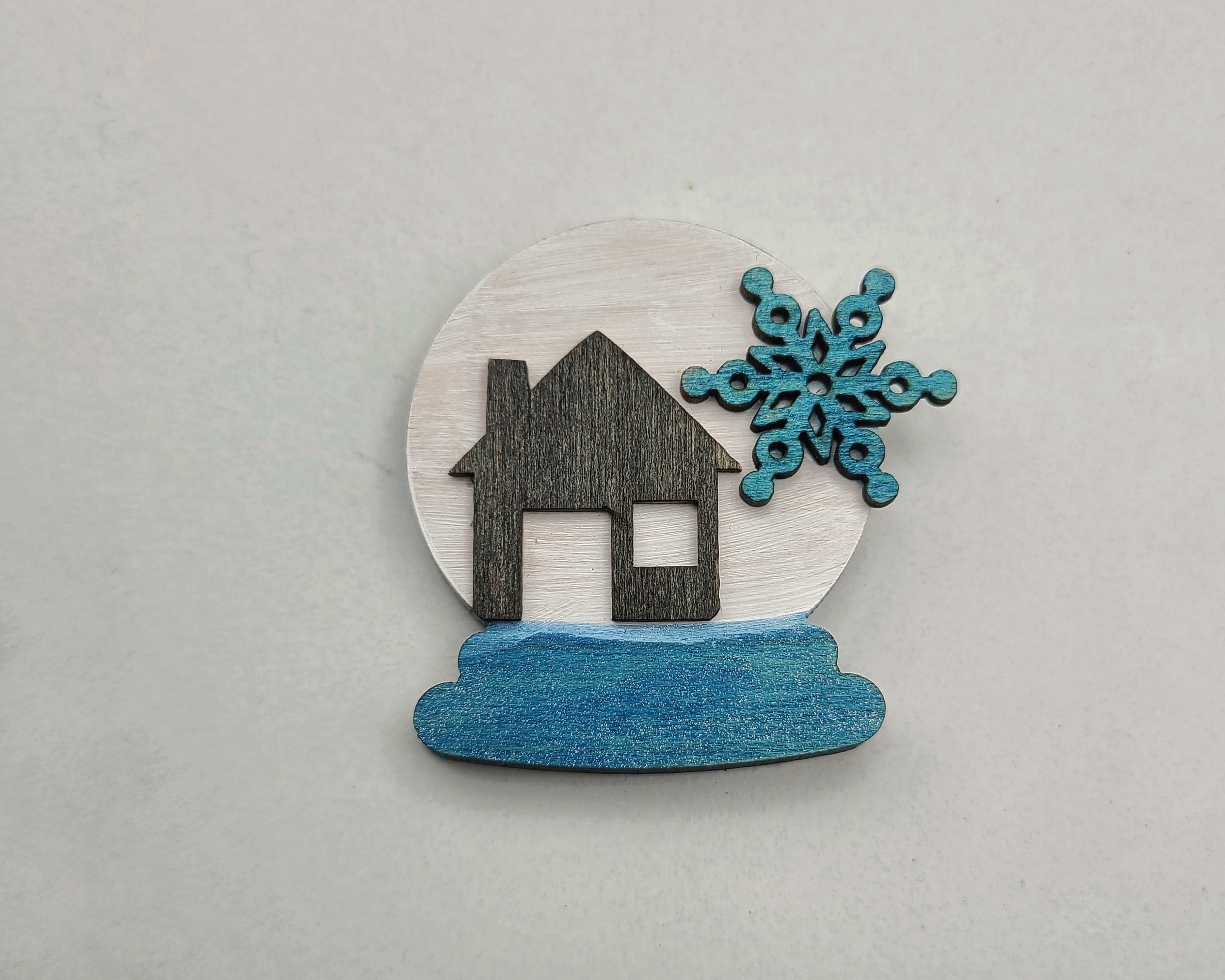 This snow globe magnet can be painted any color and can also have a different design. The examples features a house & snowflake, or just a snowflake- but we can ad a heart, tree, star, confetti, anything you want.